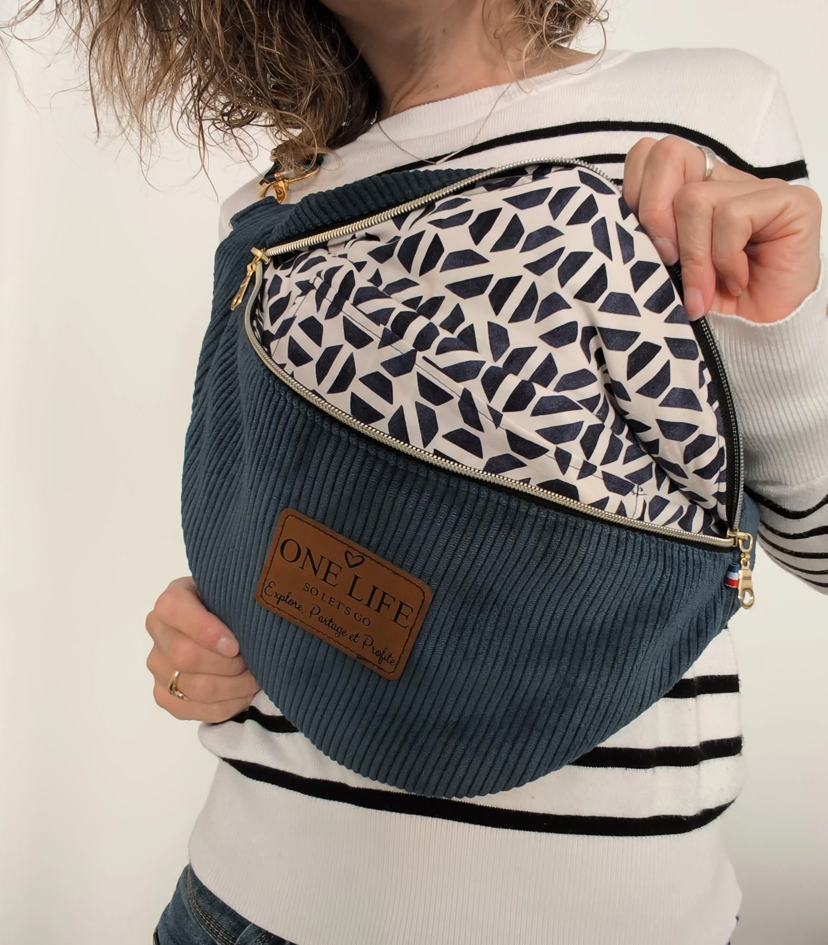 Ce sac banane grande taille, ENTIEREMENT FAIT MAIN et utltra pratique pour vos sorties.