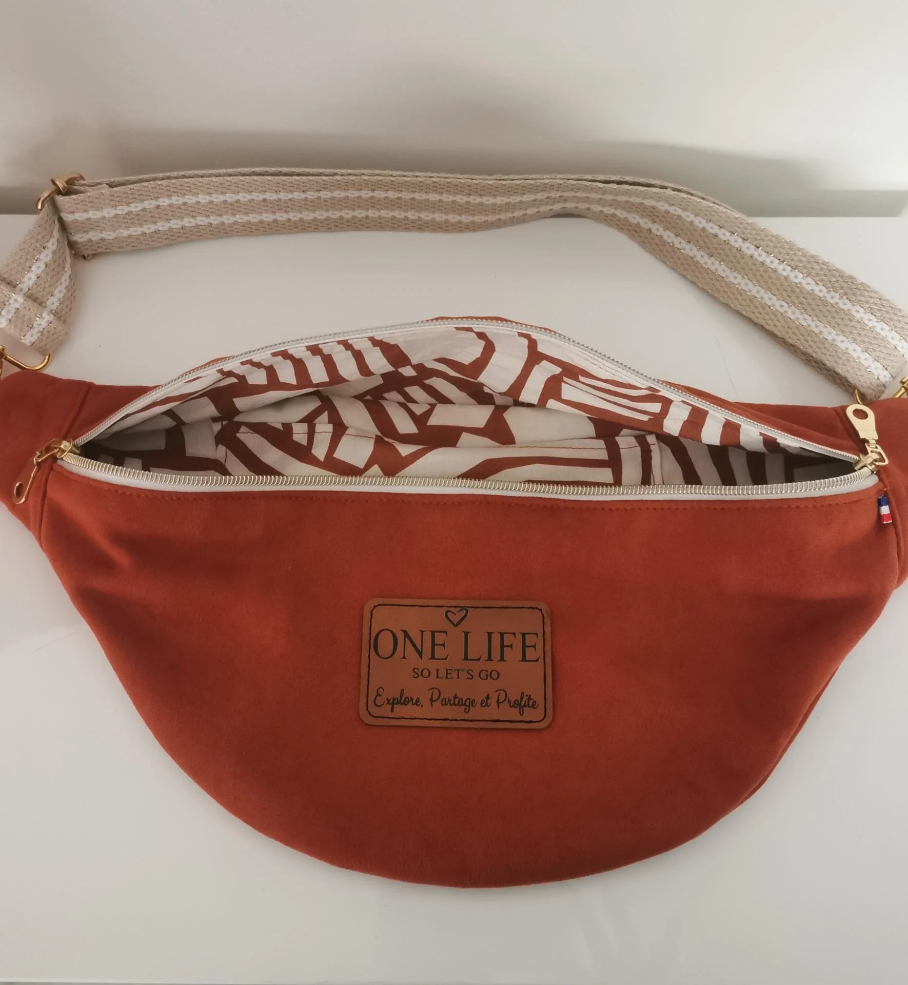 Ce sac banane grande taille, ENTIEREMENT FAIT MAIN et utltra pratique pour vos sorties.