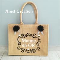 Grand Cabas toile de jute Modèle cadre +VOTRE TEXTE +oiseaux